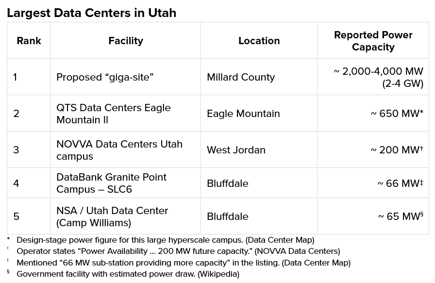 [3] O’Donoghue, Amy Joi. 2025. “Millard Data Center to Break Ground and Bring Promise to Rural Utah.” Deseret News. https://www.deseret.com/utah/2025/10/21/millard-county-data-center-to-break-ground-and-bring-promise-to-rural-utah