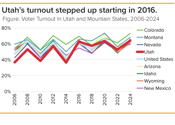Historically, Utah has been a state with low voter turnout. That began to change in 2014 with the adoption of mail-in voting.