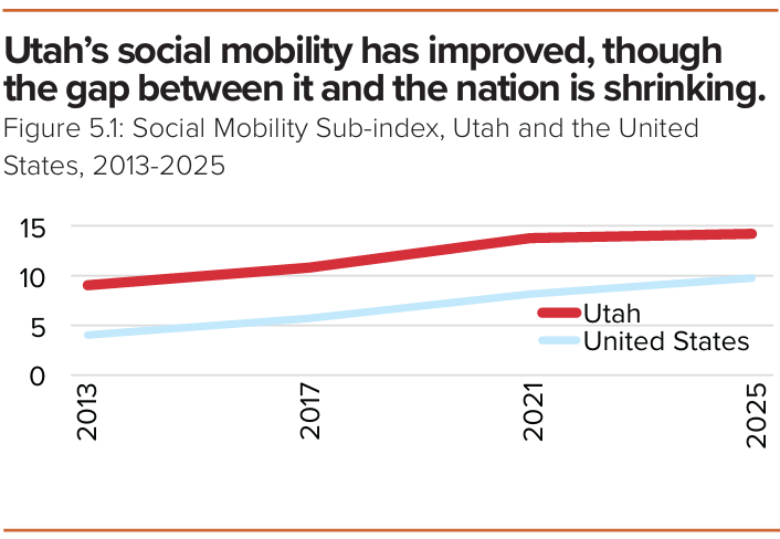 Utah’s social mobility has improved since 2013, though the gap between it and the nation is shrinking.
